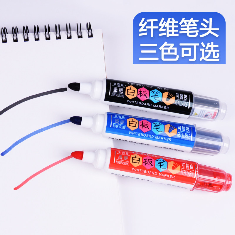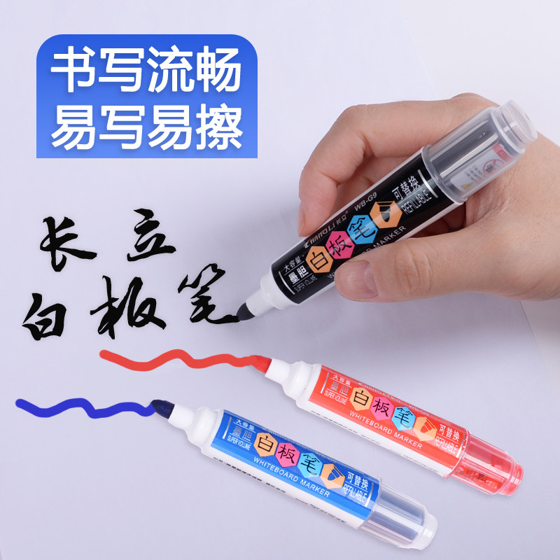 Changli whiteboard pen Ink bag Black water-based erasable children's non-toxic can add ink training course teachers with color red and blue office stationery drawing board pen writing board pen Easy to wipe thick head big head pen