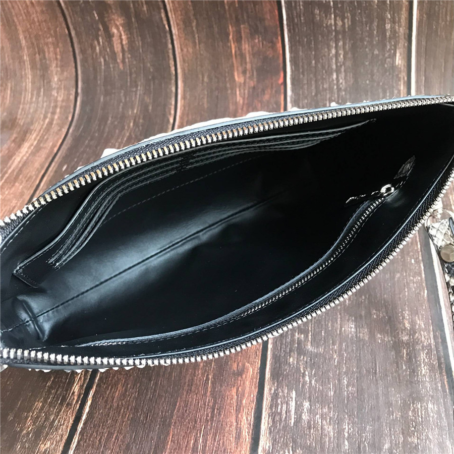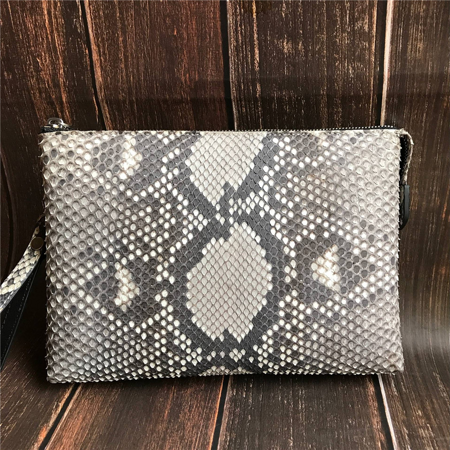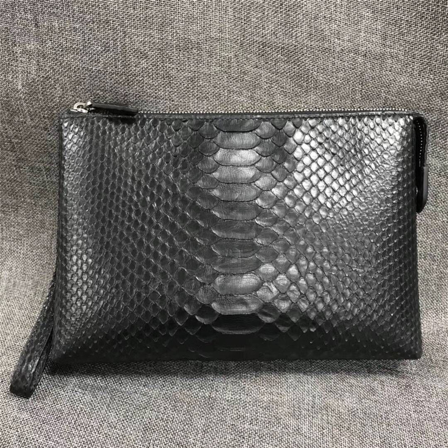 Factory direct selling real python leather handbag men's python leather casual clip bag genuine leather handbag clutch bag