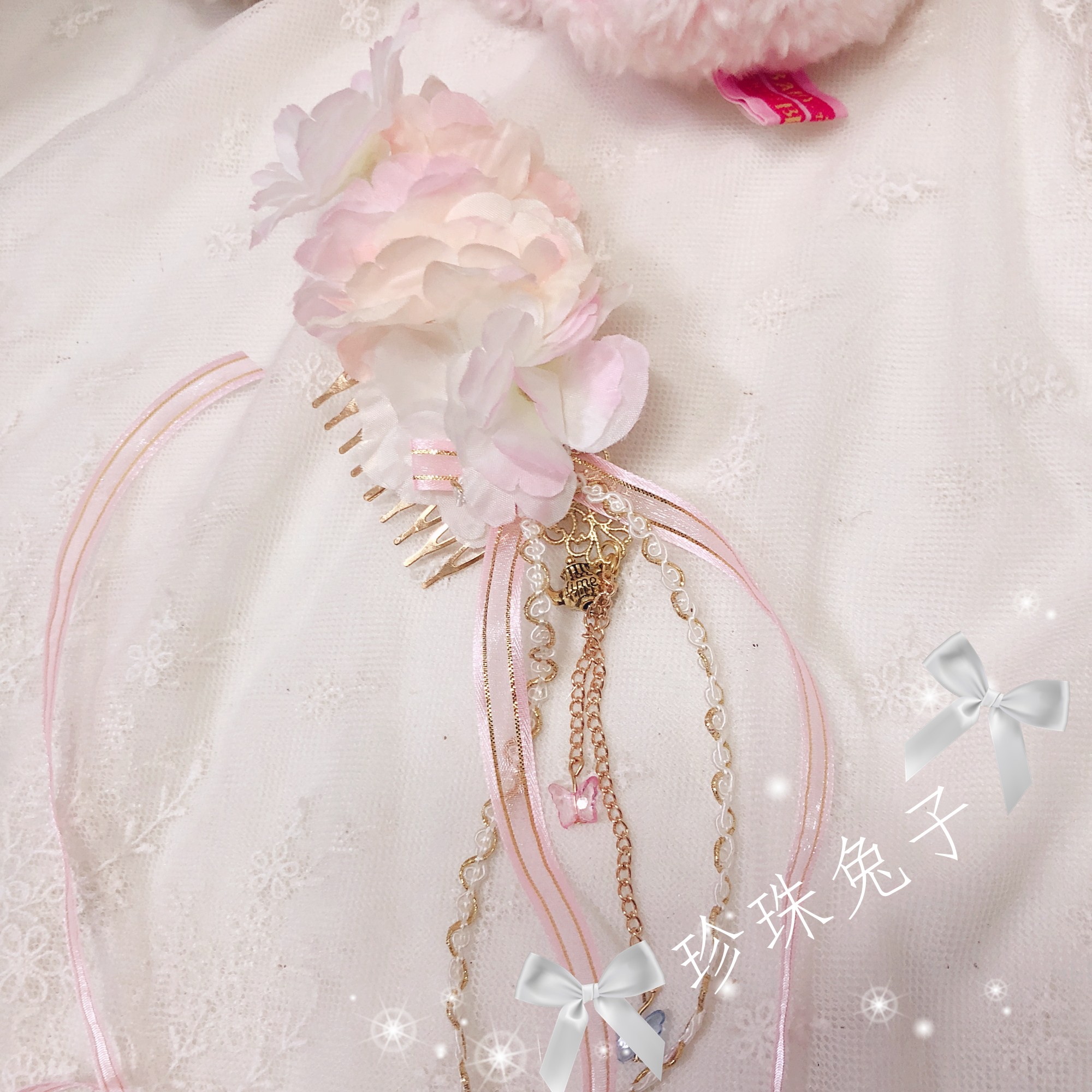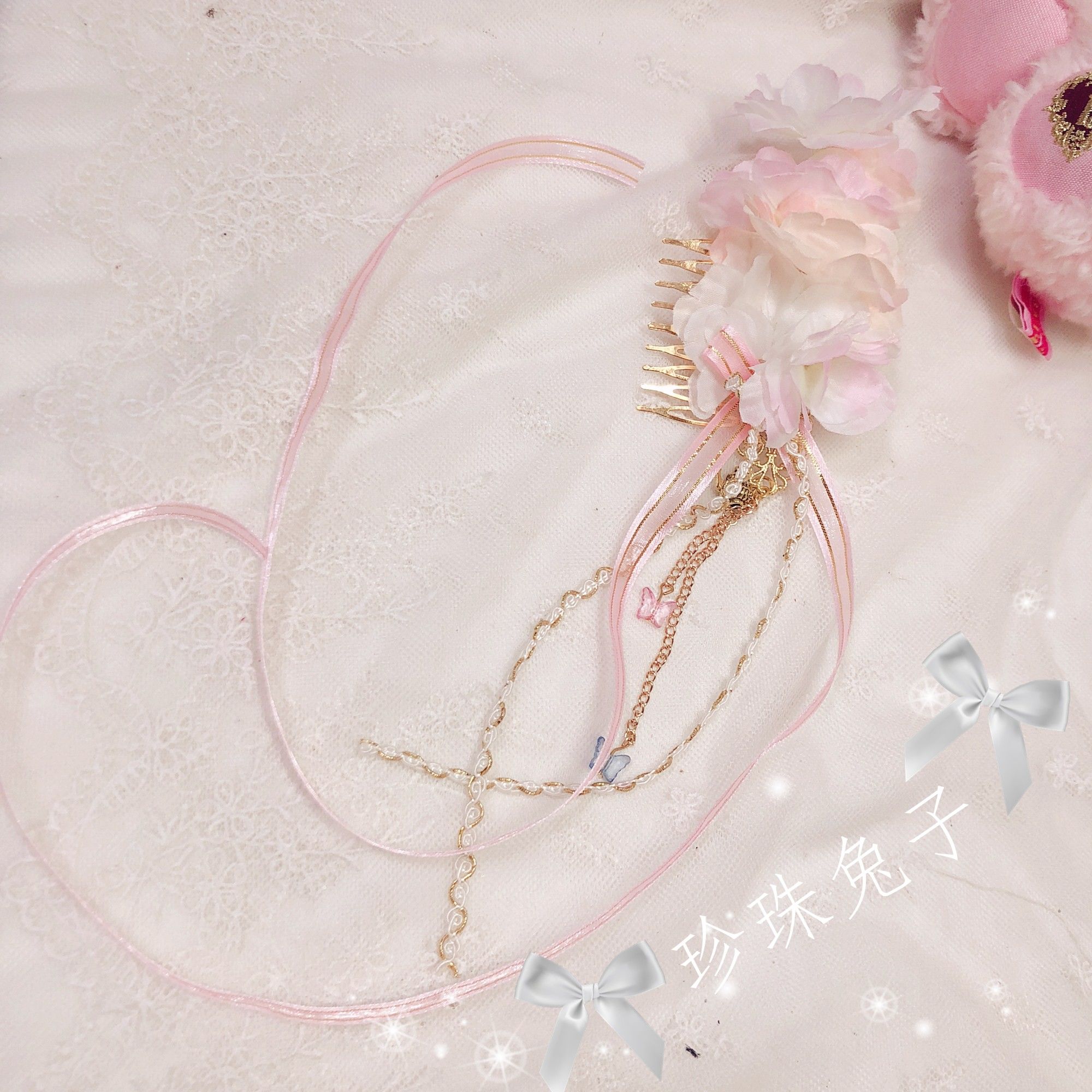 "Pearl Rabbit" original lolita hand for babyday girl tea time cherry tea flower comb