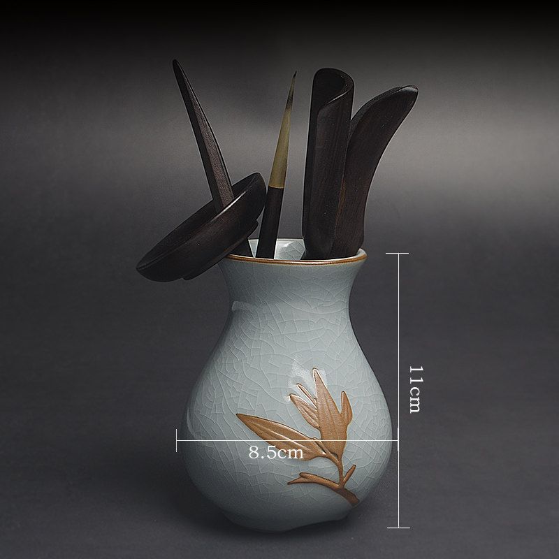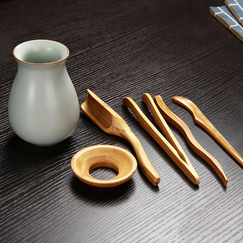 Ru kiln tea ceremony six gentlemen set handmade ceramic tea tube tea clip bamboo tea art combination cup spoon tea set accessories