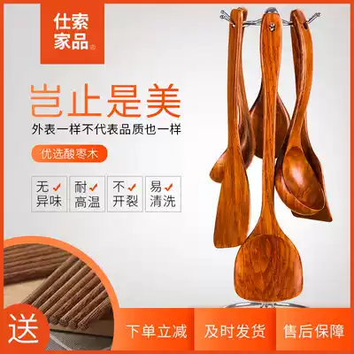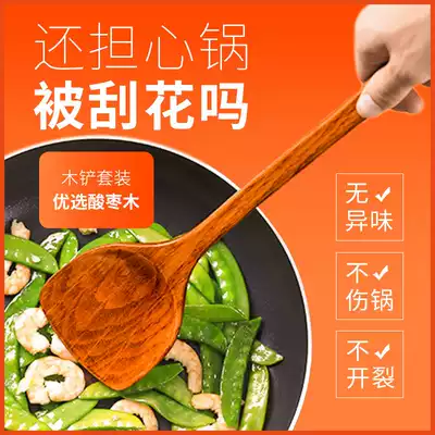 Household wooden shovel non-stick pot special high temperature resistant solid wood cooking extended handle wooden shovel Kitchen spatula set soup spoon