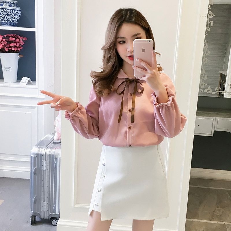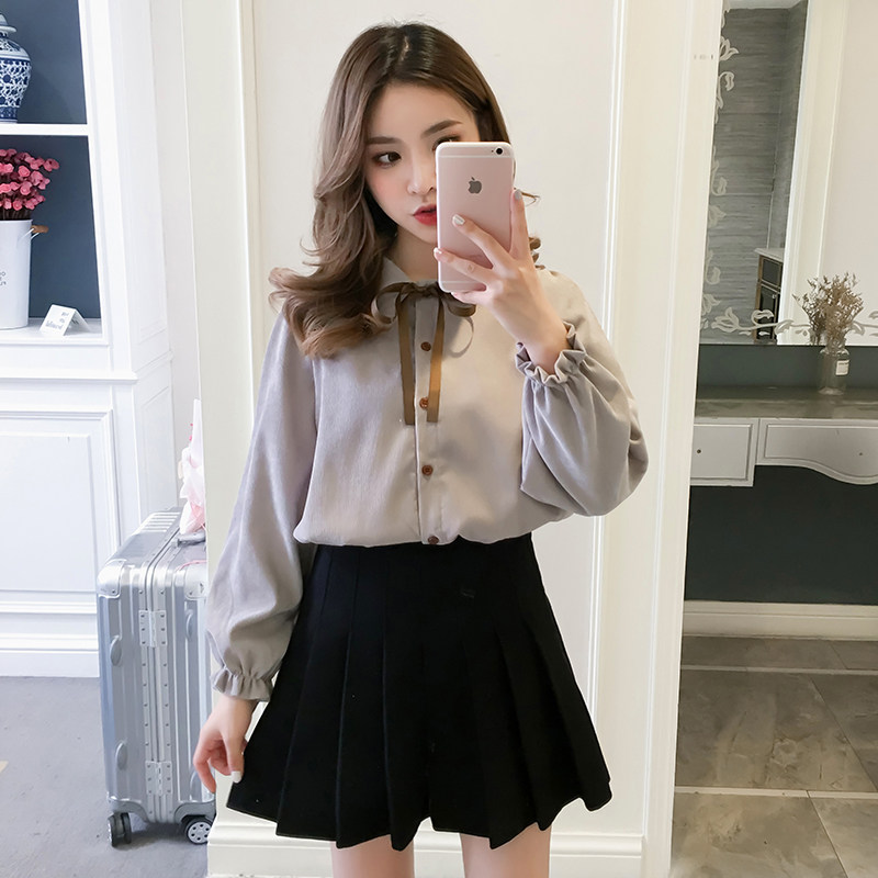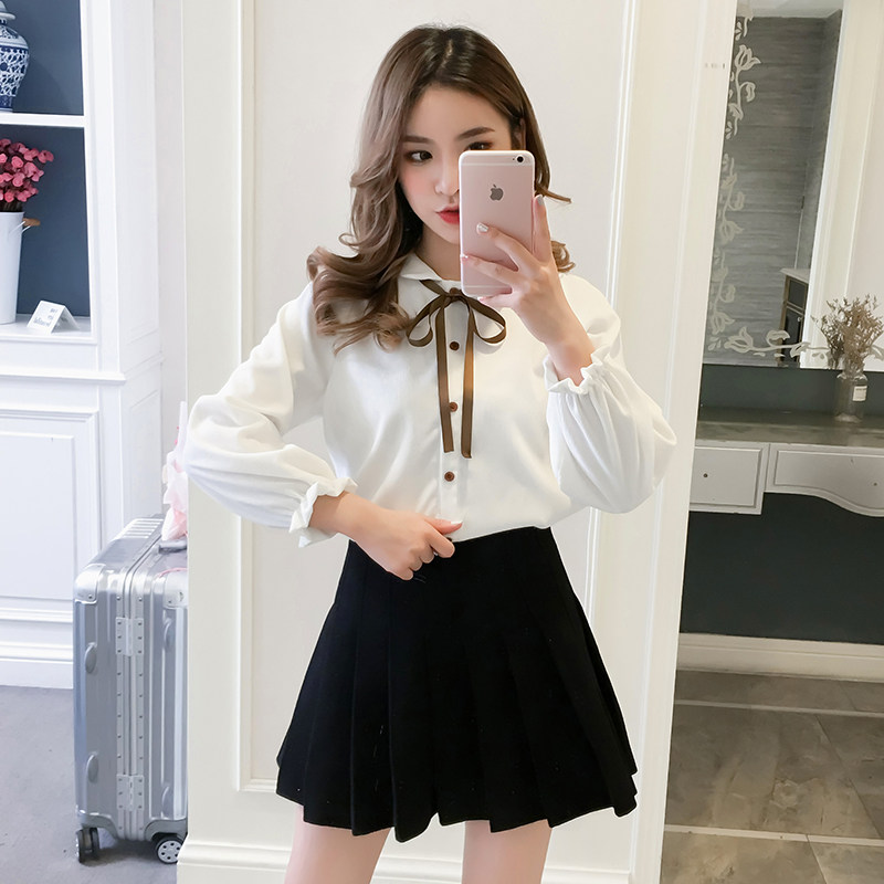 Han Van College Wind Loose Light Core Suede Bow Tie Lace Long Sleeve Shirt Woman Spring Autumn New 100 Hitch Student Shirt