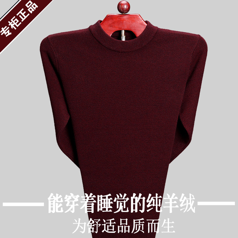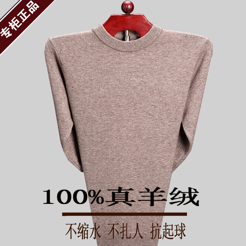 Anti-season clearance Ordos men's cashmere sweater V-neck thick men's sweater middle-aged round neck sweater