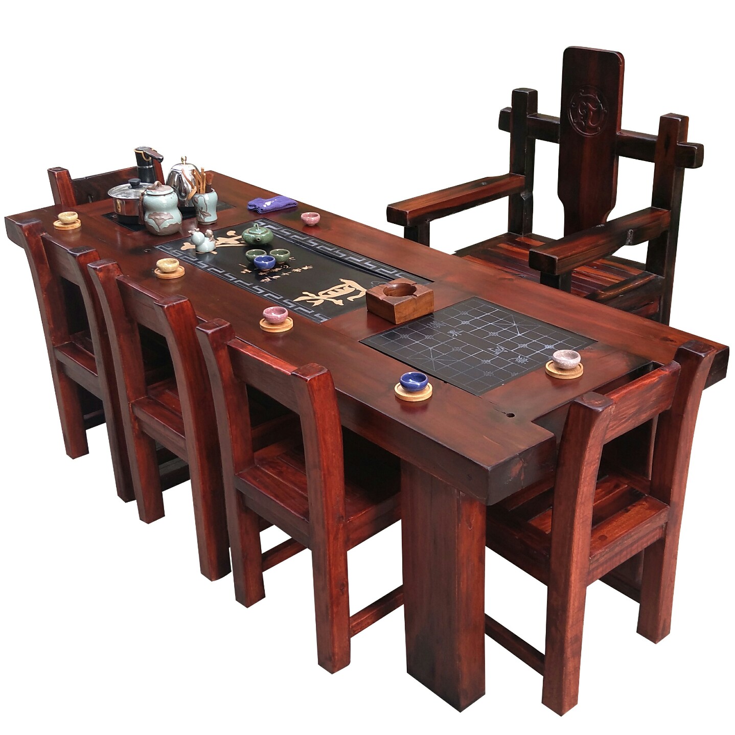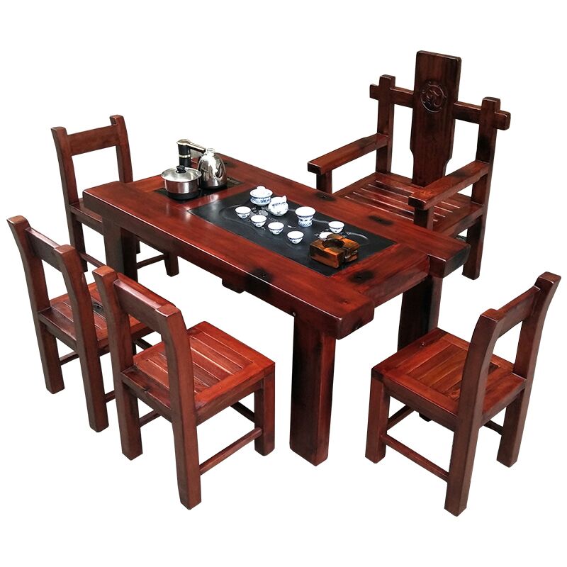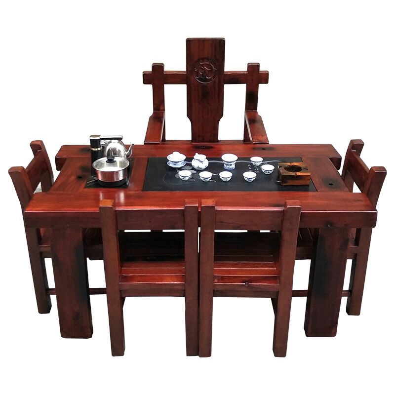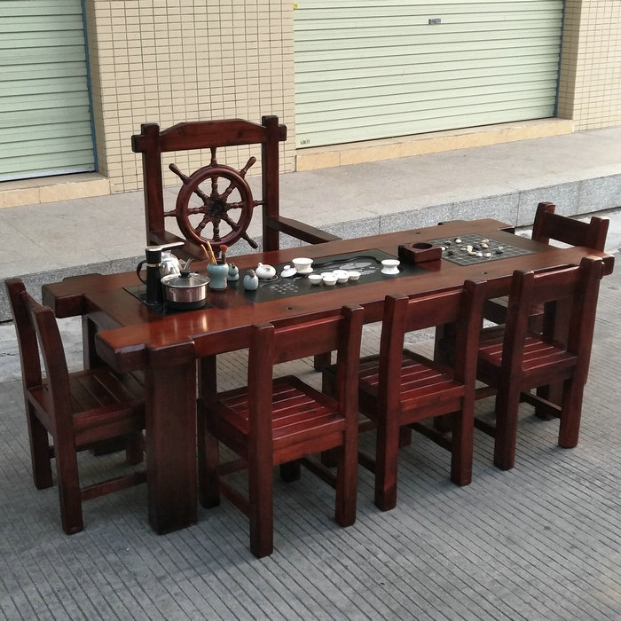 Old boat wooden tea table and chair combination living room balcony small coffee table office tea table kung fu tea table solid wood furniture special offer