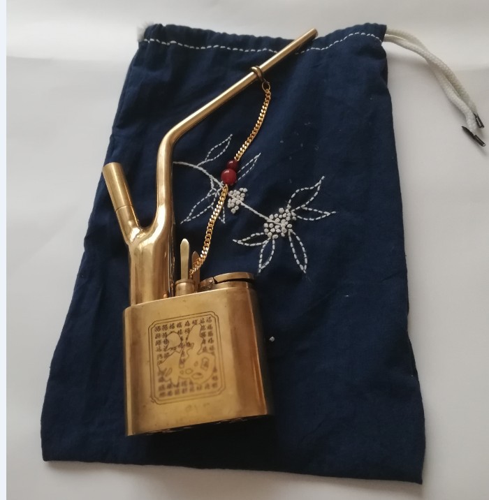 Ganzi Lanzhou shredded hookah with pure copper hookah, hookah, pipe, hand-embroidered tobacco bag, green