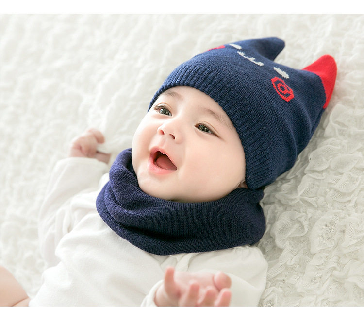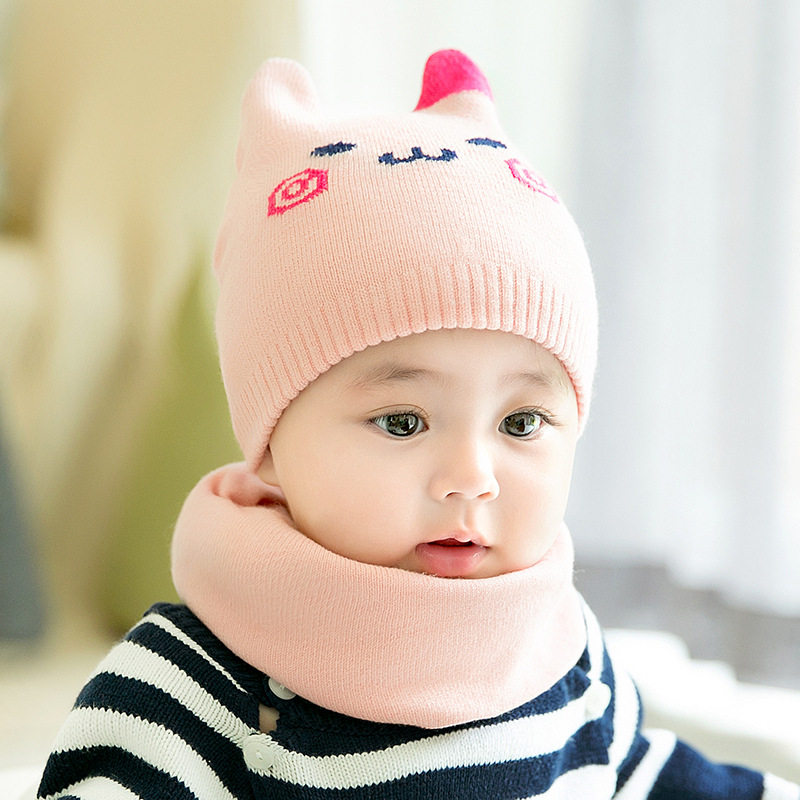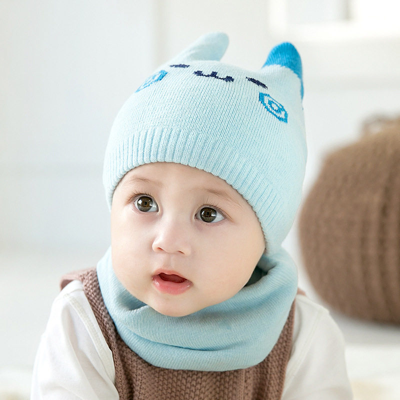 Baby hat autumn winter 0-3-6-12 months female baby knit wool cord hat boy warm surrounding neck newborn cap