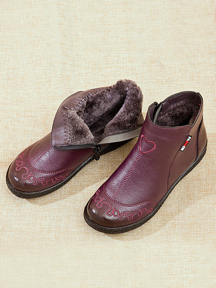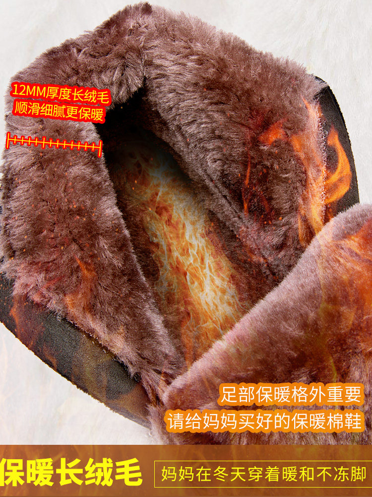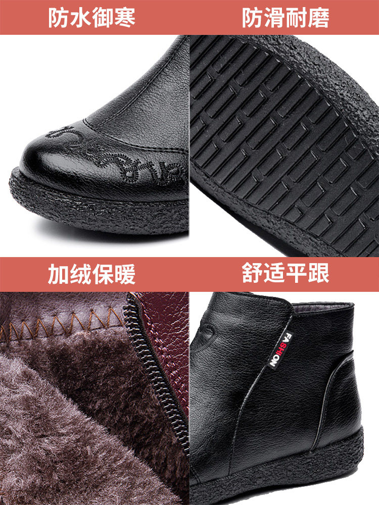 Mother's cotton shoes women's winter non-slip soft bottom middle-aged and elderly women's shoes warm snow short boots women's fleece middle-aged leather shoes