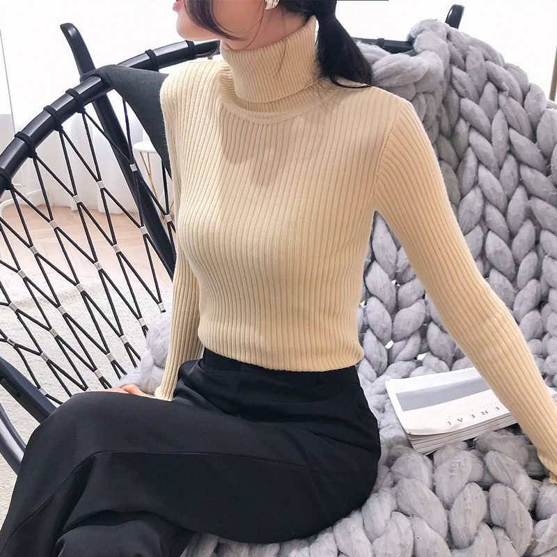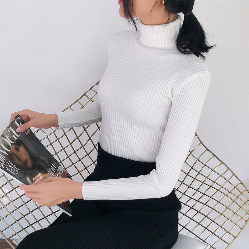 Fall and Winter new Han Edition Han Tailor Hardware Head thickened high-collar sweater tight long sleeve knitted and blouse