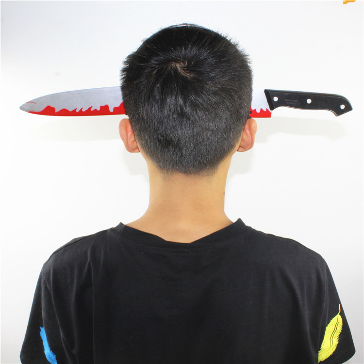 Halloween head plays a funny trick horror simulation prop scary penetrating headband ax dagger dagger knife