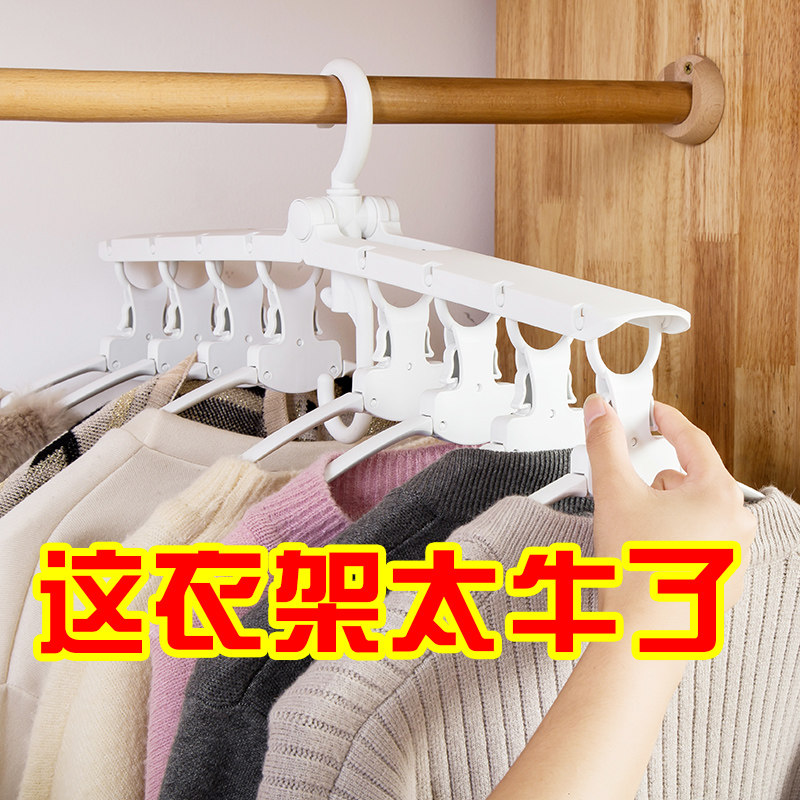 Multi-function hanger storage artifact Folding hanger Balcony space-saving shaking sound magic hanger Multi-layer household