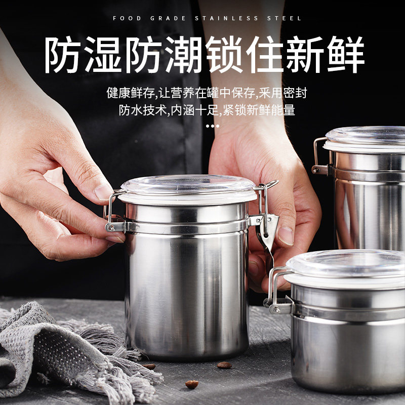 Stainless Steel Seal Tank Coffee Tank Candy Jar Powdered Milk Tea Leaf Jars Dried Fruit Jars Powder Jars Milk Tea Shop Supplies
