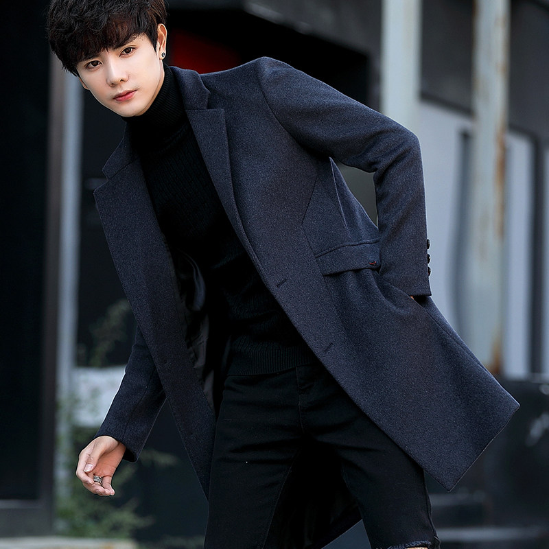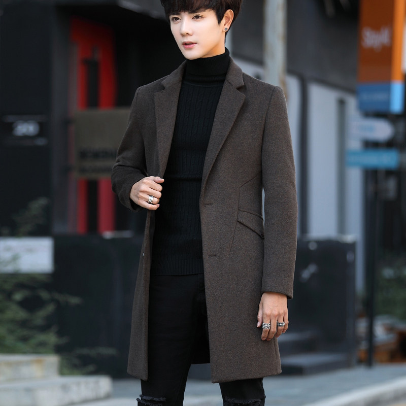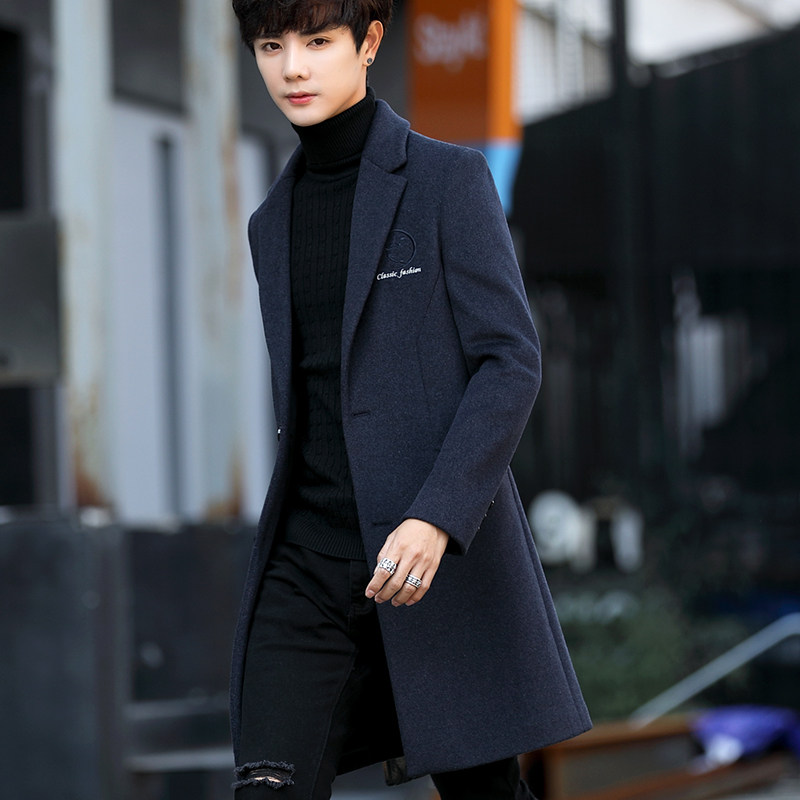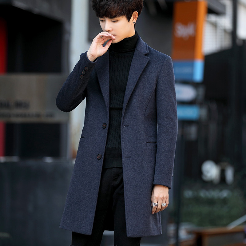 2019 popular wool coat men's medium and long version of men's wool coat Korean version of British trench coat winter men's clothing