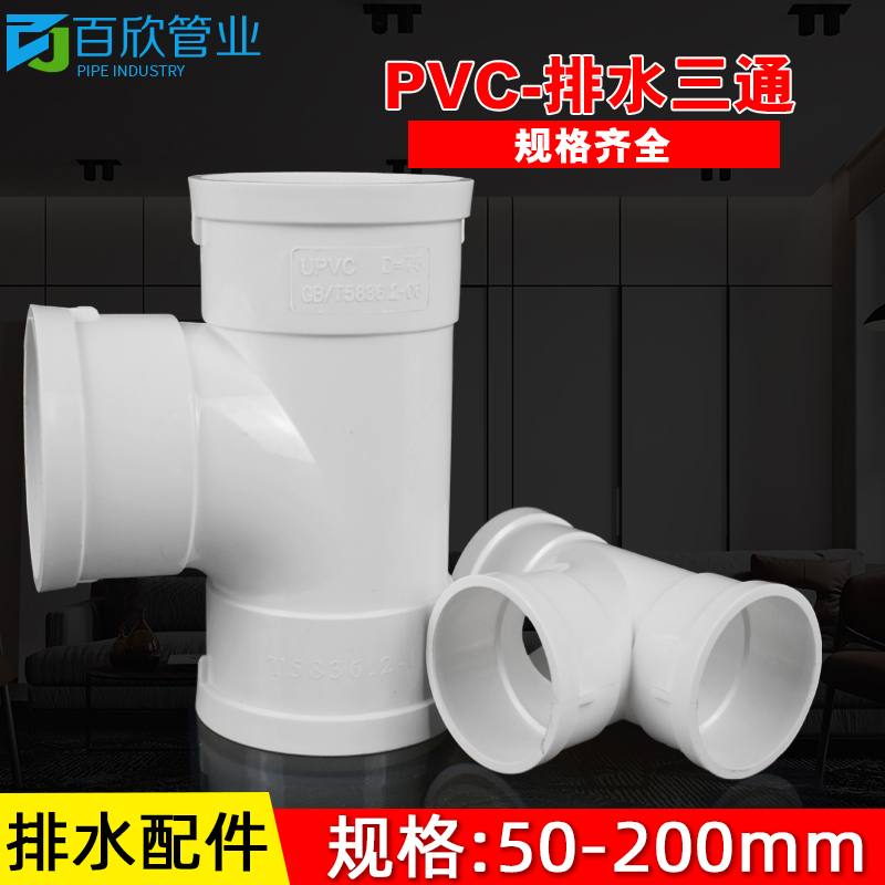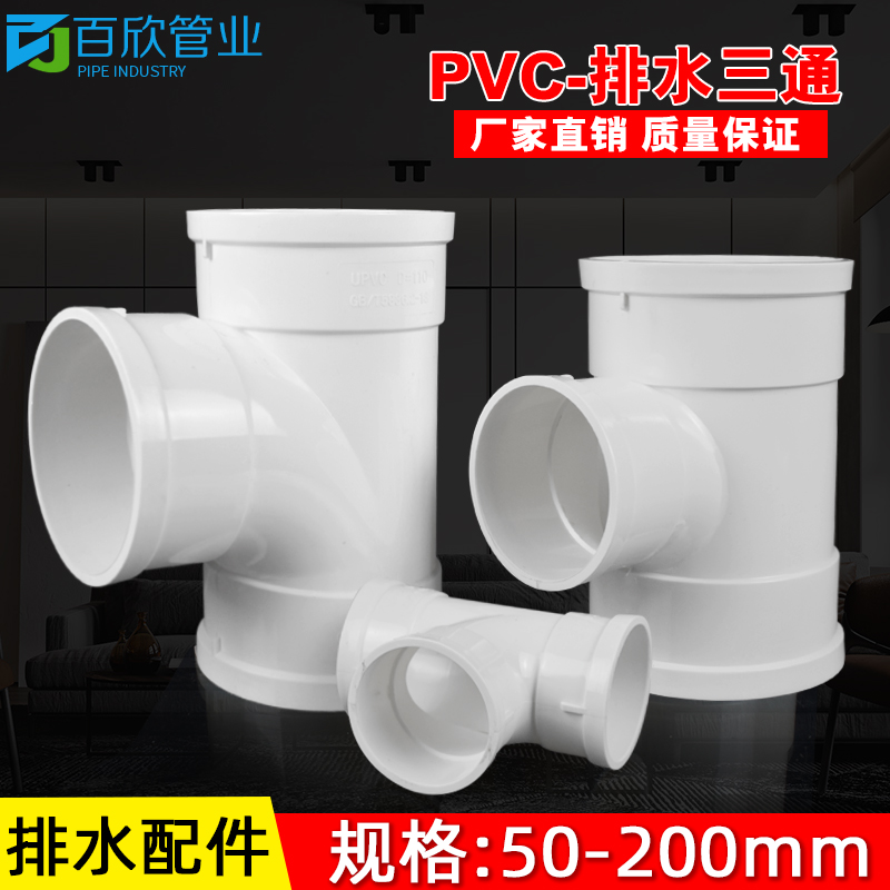 PVC tee joint drain pipe downstream different diameter lower fitting 50 75 110 160 200 250 315