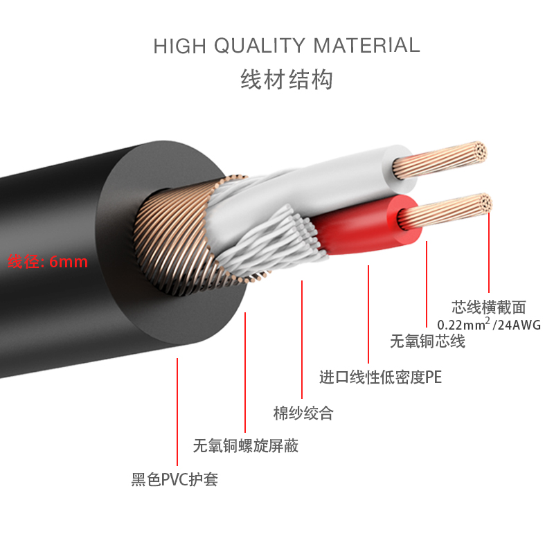 ROXTONE microphone line 2 two-core microphone sound connection line engineering audio signal line horn over-machine line