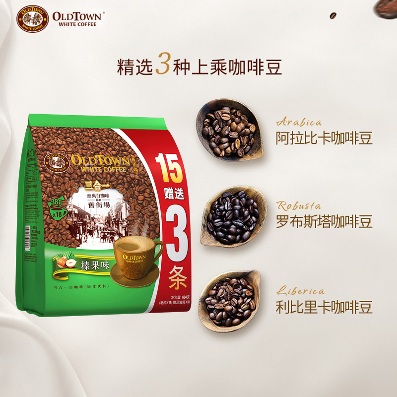 Malaysian Original Clothing Import Old Street Field White Coffee Hazelnut Taste Three-in-one Instant Coffee Powder 4 Packaging Composition