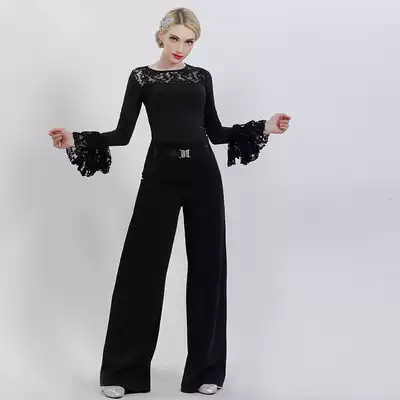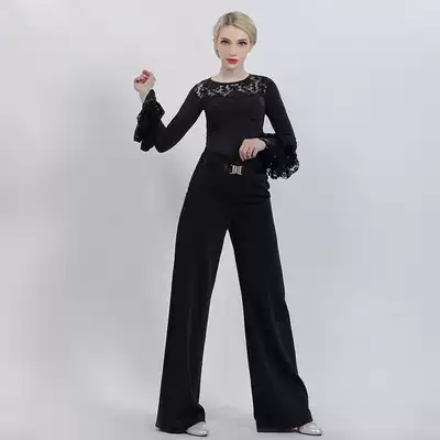 2021 new national standard modern social dance pants female Latin dance large straight trousers culottes square dance wide legs