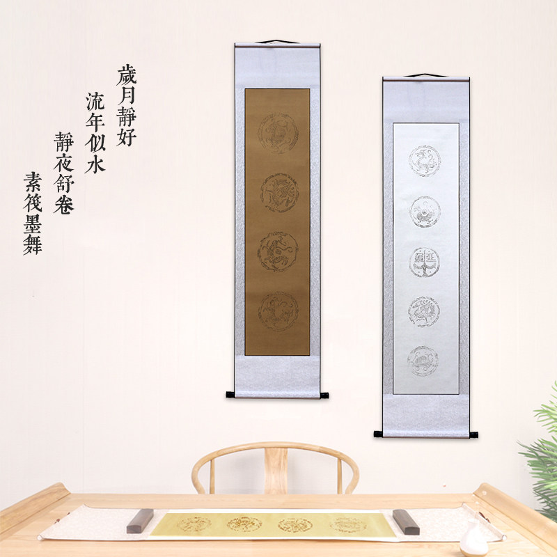 Full-wear framed hanging shaft painting shaft blank scroll banner half raw and half cooked with five words of seven words Won paper calligraphy-Taobao