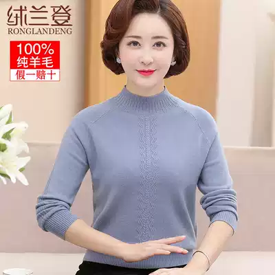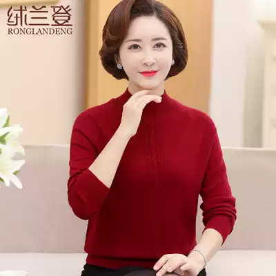 Middle-aged sweater female mom autumn and winter half turtleneck wool base shirt solid middle-aged upscale men's sweaters thick