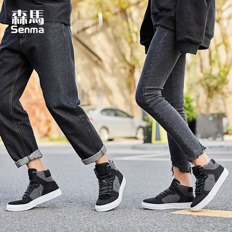 Semir Guochao high-top shoes men's autumn and winter shoes men's shoes plus velvet tide shoes couple shoes Korean version of the trend off domestic shoes