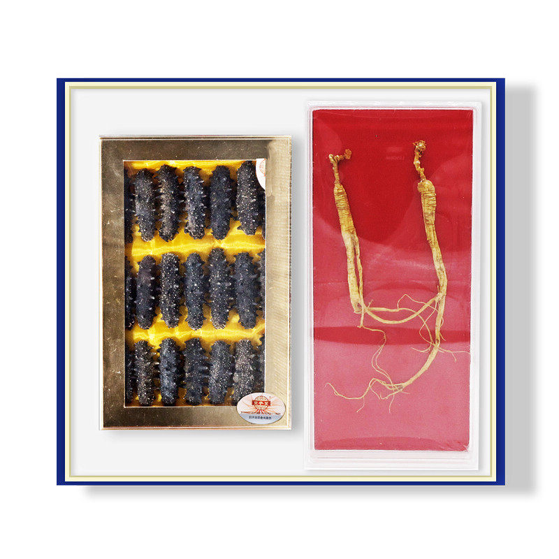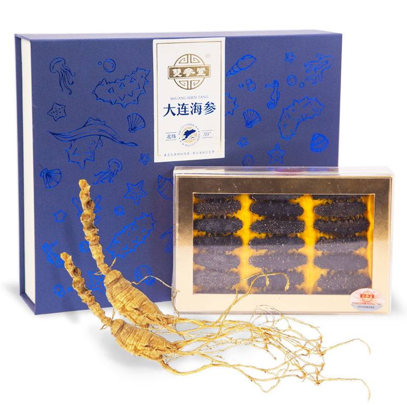 Shuangshentang double ginseng gift box accompanying gift sea cucumber gift box Dalian light dry sea cucumber 98g Changbai Mountain forest ginseng