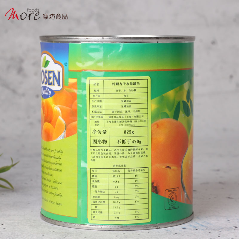 Mofang good shun apricot fruit canned 825g yellow plum fruit baking fruit cake pizza restaurant spare ingredients