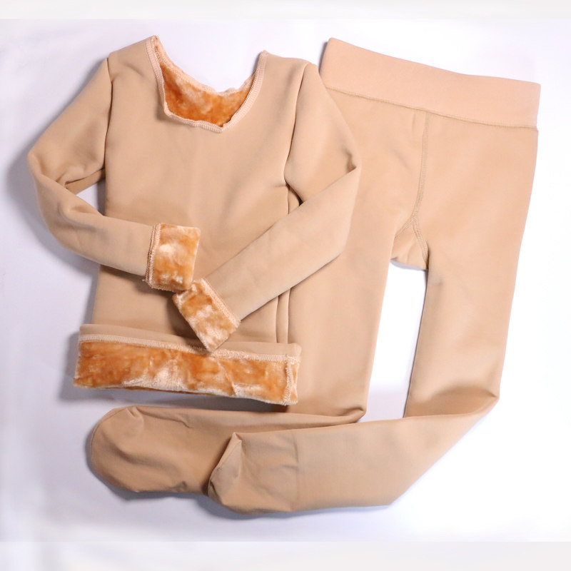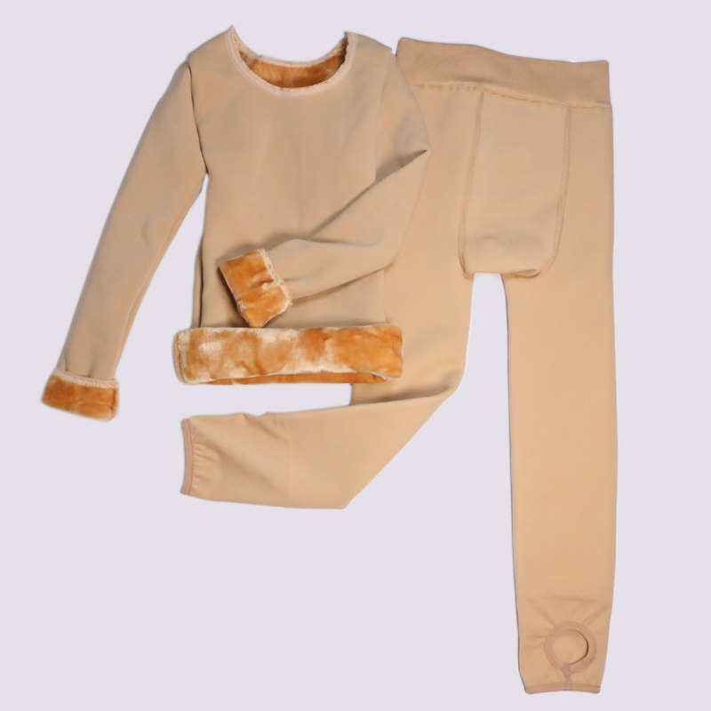 Girls dance plus velvet padded bottoming clothes winter hot clothes children's flesh color performance base set invisible clothes