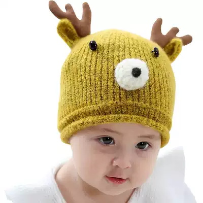 Autumn and winter baby wool hat children's hat male and female children rabbit hair Double Ball cartoon baby knitted hat car label cap cap