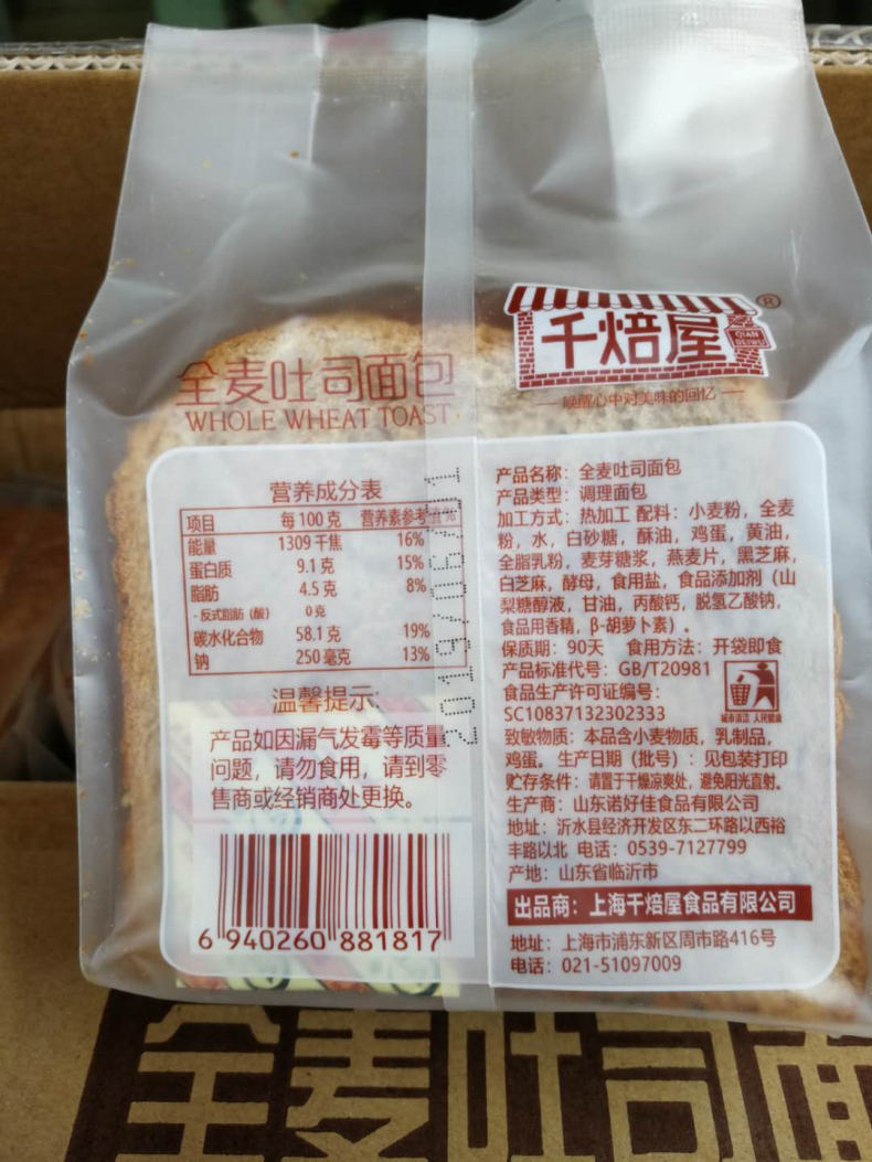 Thousand Bakery Milk Fragrant Toast Whole Wheat Toast Super Soft Toast Slices Can Be Made Sandwich Toast FCL Multi-Saving