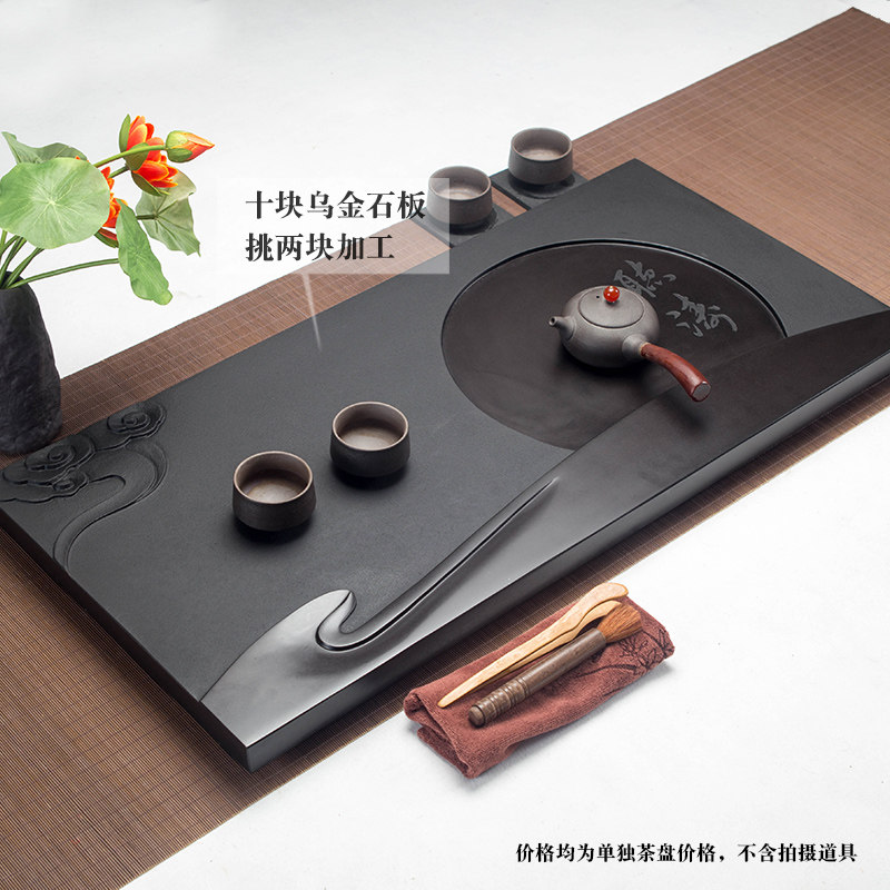Black stone tea tray household natural black stone tea sea large and small whole stone tea table stone tea set carving