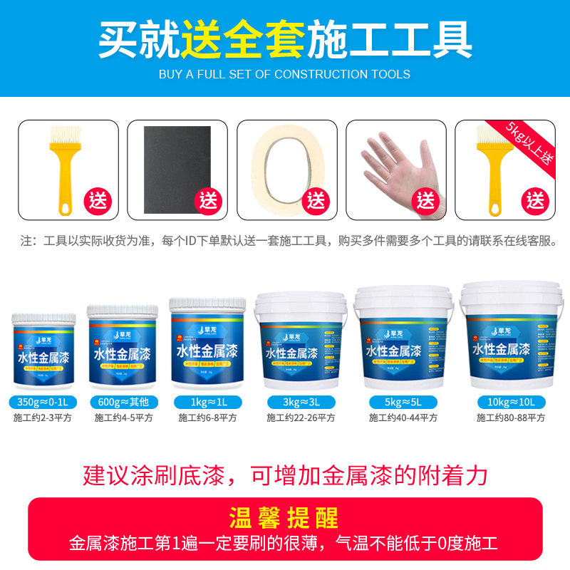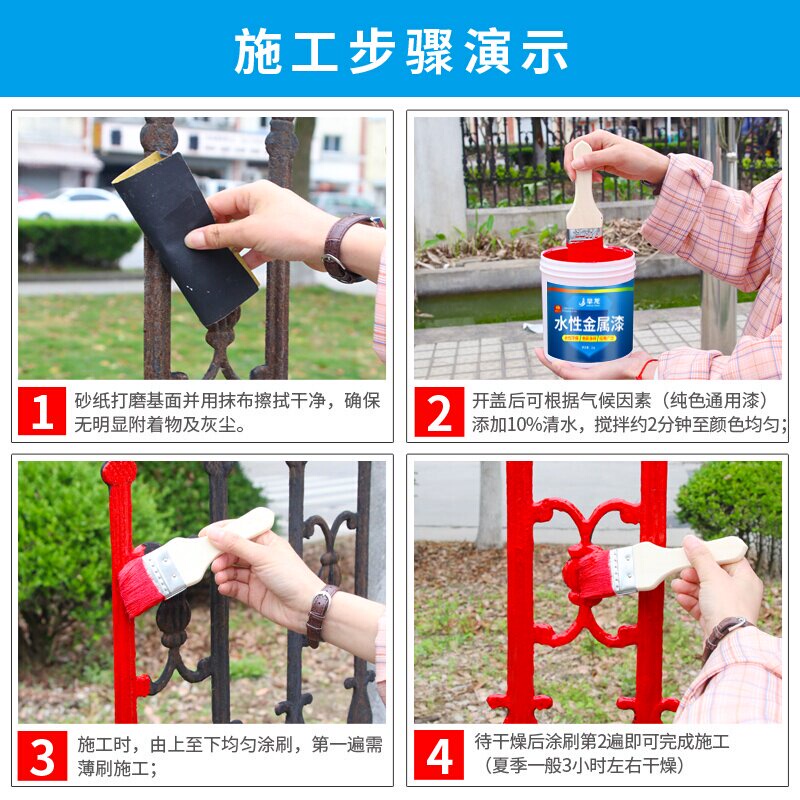 Water-based metal paint Rust-proof paint Steel iron door iron paint rust-free household paint Black white renovation paint Quick-drying