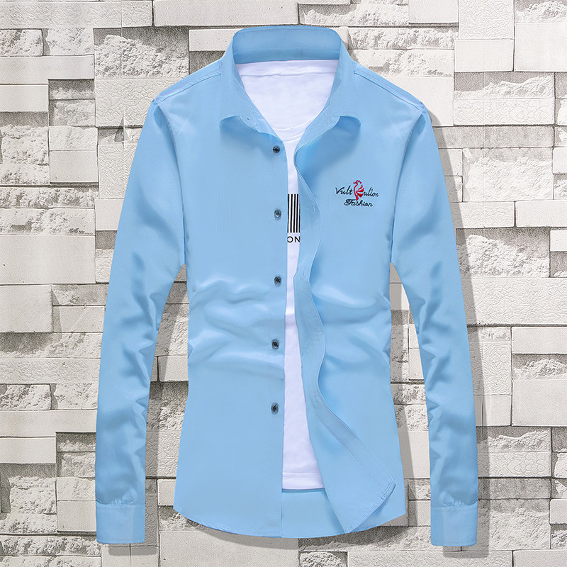 Spring long-sleeved white shirt men's Korean slim teen shirt trend men's casual inch shirt men's clothes