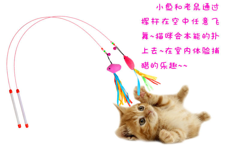 Cat Supplies Super Elastic Metal Wire Mice Funny Cat Stick Pet Cat Toy Wire Color Feather Funny Cat Stick
