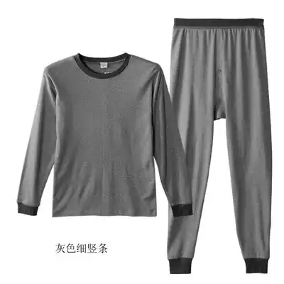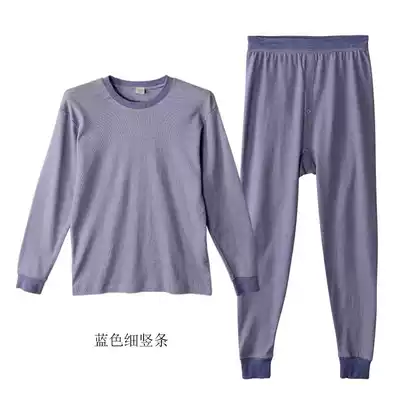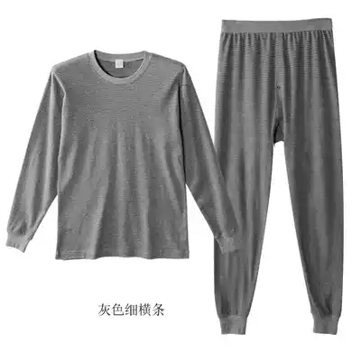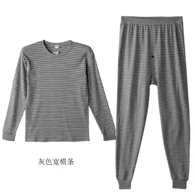 Mori Goose Cotton Striped Basic Underwear Men's Loose Round Neck Hair Clothing Sanitary Pants Set