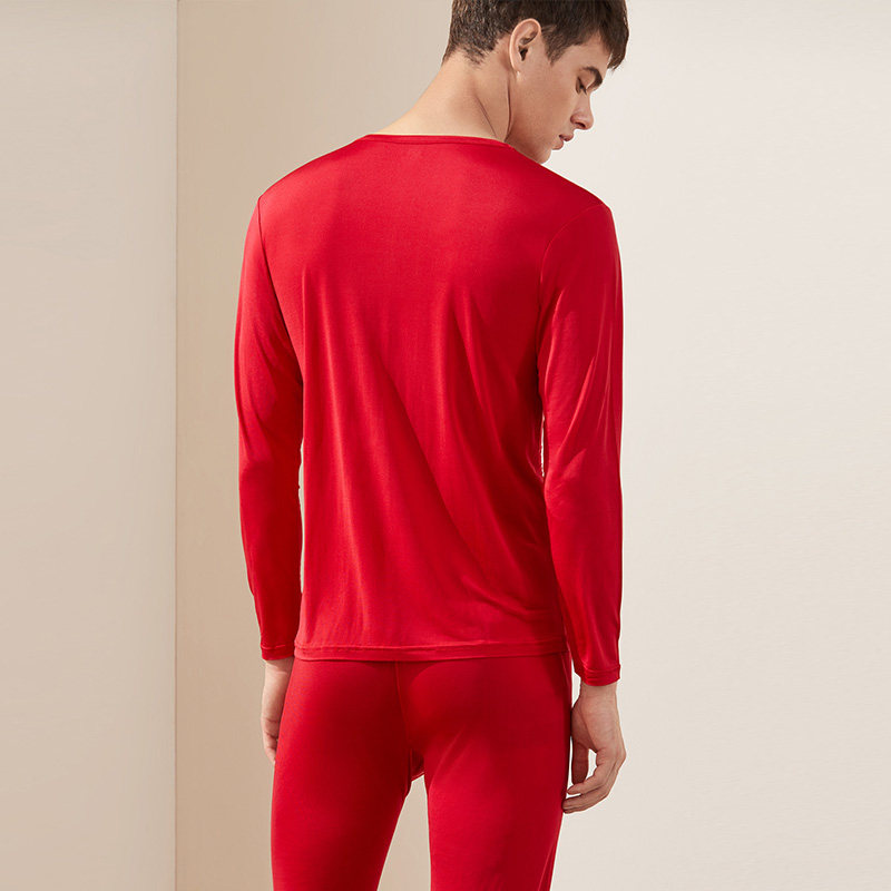 Golden three towers autumn and winter on the new silk knitted underwear suit round neck warm clothes pants set solid color warm clothes men