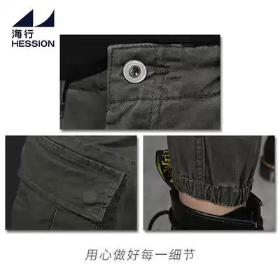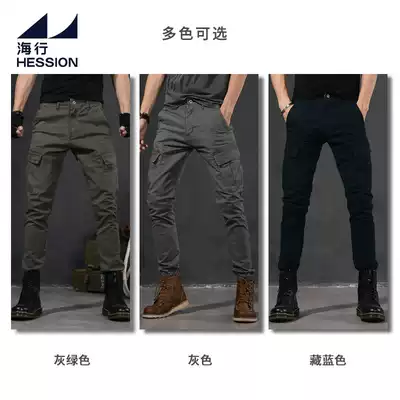 Army green tide brand men's slim-fit drawstring overalls cargo trend multi-pocket pants with Martin boots