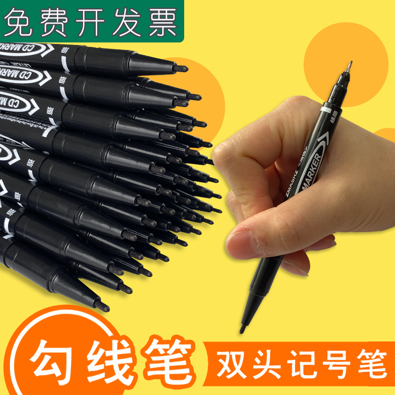 Marker oily thin head children's painting hook pen black double head stroke is waterproof not easy to fade non-erasable mark stroke edge wholesale small head marker can be added ink students with red and blue fine