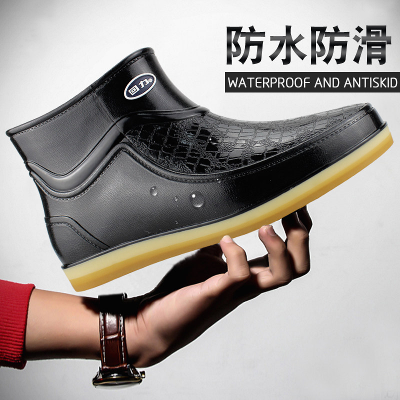 Pull back men's rain boots water shoes men's low-top rubber shoes kitchen shoes fashion non-slip waterproof labor insurance work shoes rain shoes