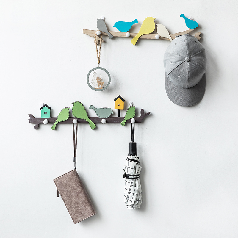 American country bird hook wooden wall key coat hook creative porch wall wall hanging decorative coat rack