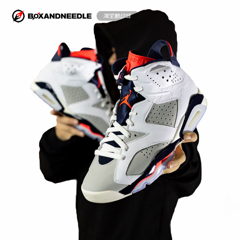 AIR JORDAN6 AJ6 Manuscript White Blue Infrared Basket Sneakers 384665-705-106 384664-104