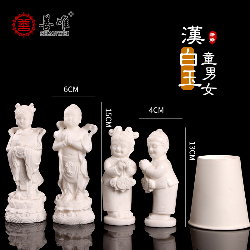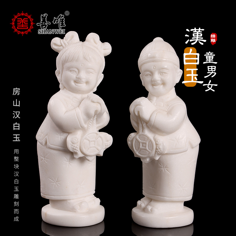 Han Baiyu Jade Boy Boy Girl Urn Front Golden Boy Jade Female Ornament Burial Funeral Funeral Articles Funeral Supplies