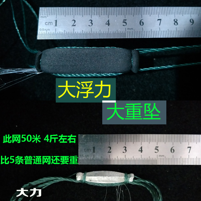 1 2 meters high 4 fingers 50 meters long(heavy sinking net three layers