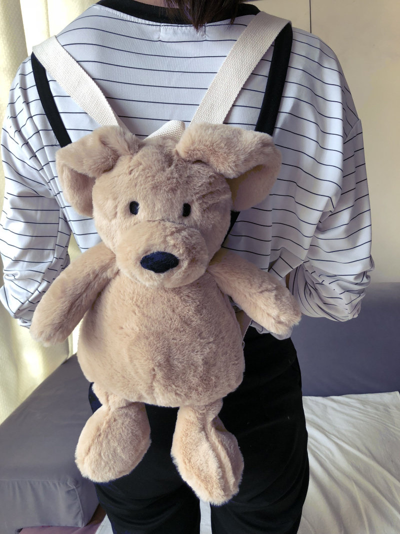 Z Family New Children Puppies Double Shoulder Bag beige plush suede suede bag girl boy baby boy bag adult can back