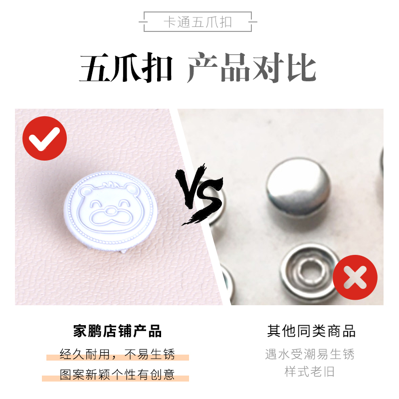 Private custom environmental protection five-claw buckle metal button Anti-light invisible dark button Saliva towel snap button Baby crawling suit