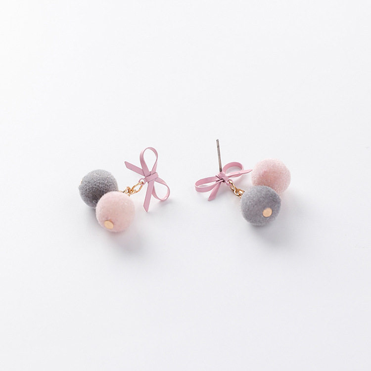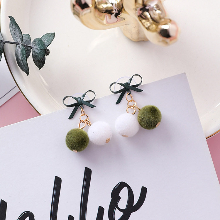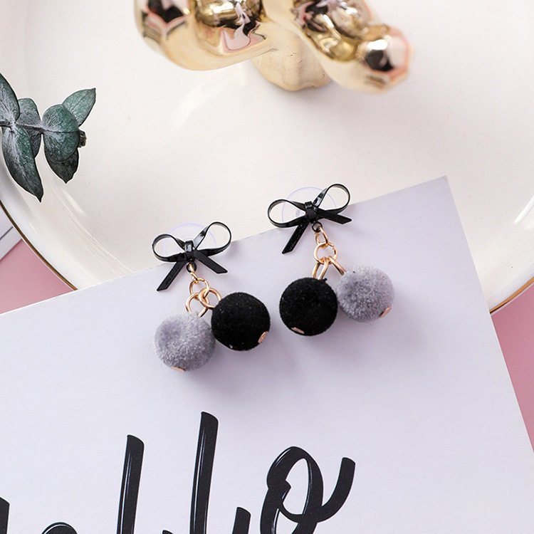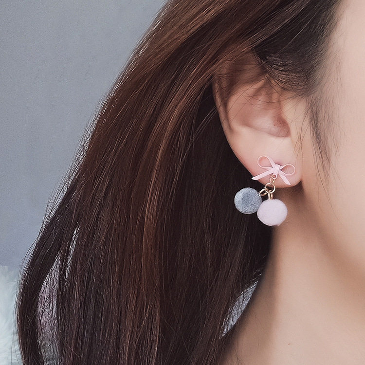 Bow small hair ball earrings Female hair ball earrings Plush autumn and winter earrings Suitable for winter earrings