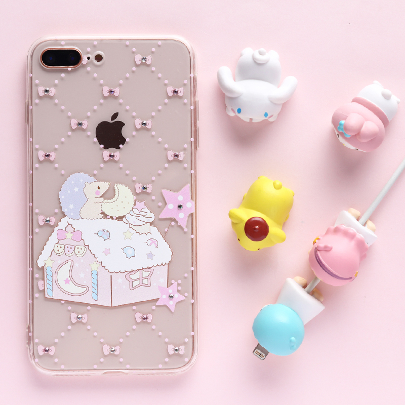 Apple data line silicone protective sleeve charger data line protection head biting a silicone cartoon teenage girl cute