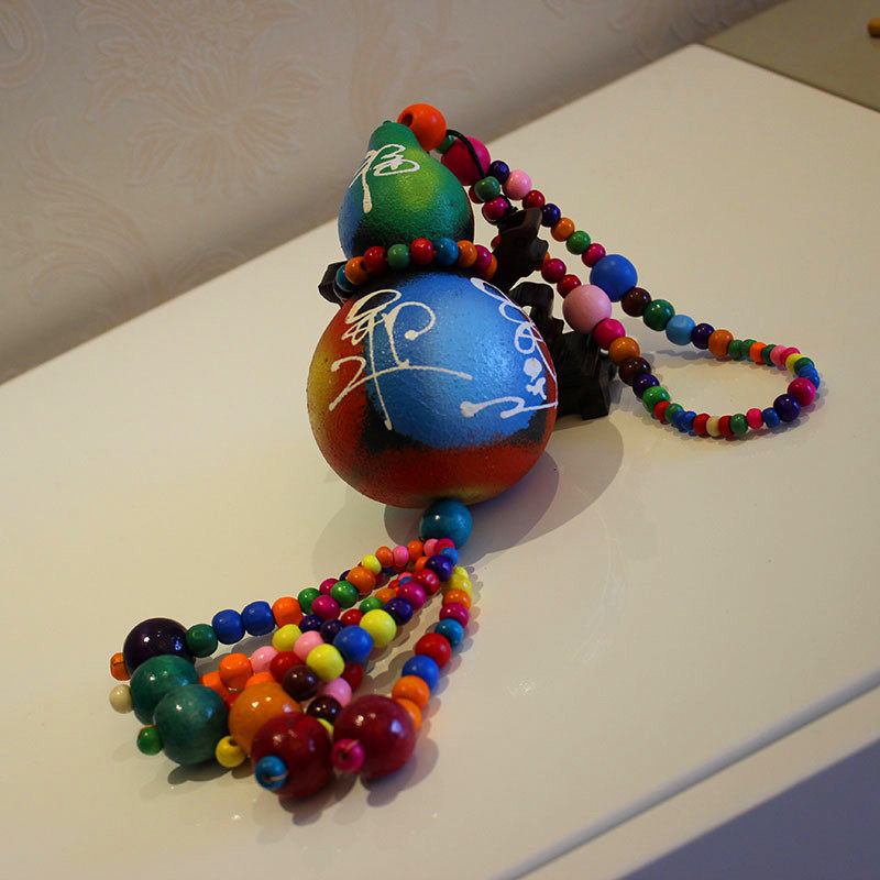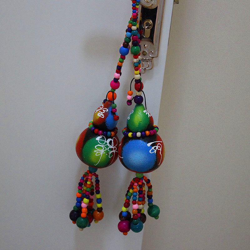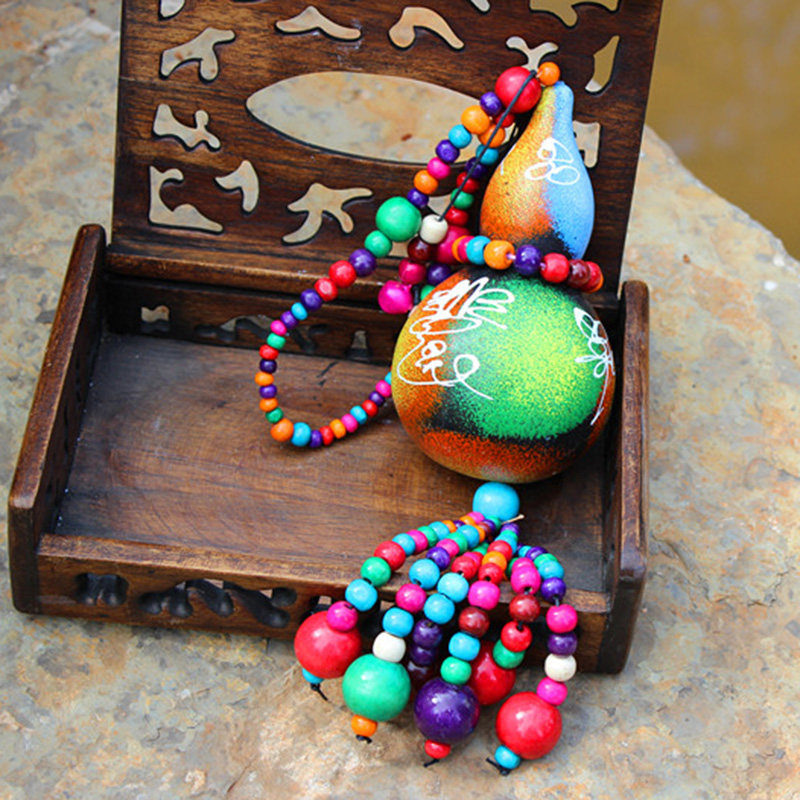 Dongba ethnic characteristics Re-painted Dongba hanging wood bead gourd