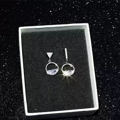Temperament simple 925 silver needle asymmetric shiny zirconium geometry earless padded ear clip no hole earrings jewelry women tide