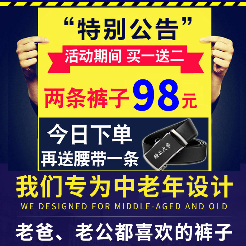Middle-aged men's casual pants spring and autumn thick fat plus large cotton loose middle-aged old daddy pants