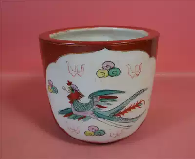 80 s Chaozhou Fengxi No. 1 factory hand-painted red land dragon and phoenix incense burner large 13 3*12cm hand-painted