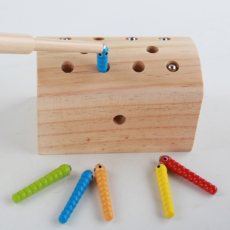 Meng's enlightenment early to teach wooden puzzle baby 1-2-3-year-old magnetic catch-worm parenting game fishing toy children